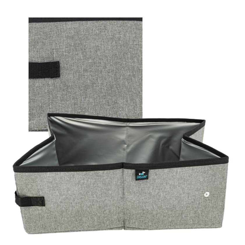 Cette litière de voyage Fidelami est indispensable pour partir en vacances. Pliable, elle ne prend pas de place dans les bagages, et peut aussi servir de litière que de panier.